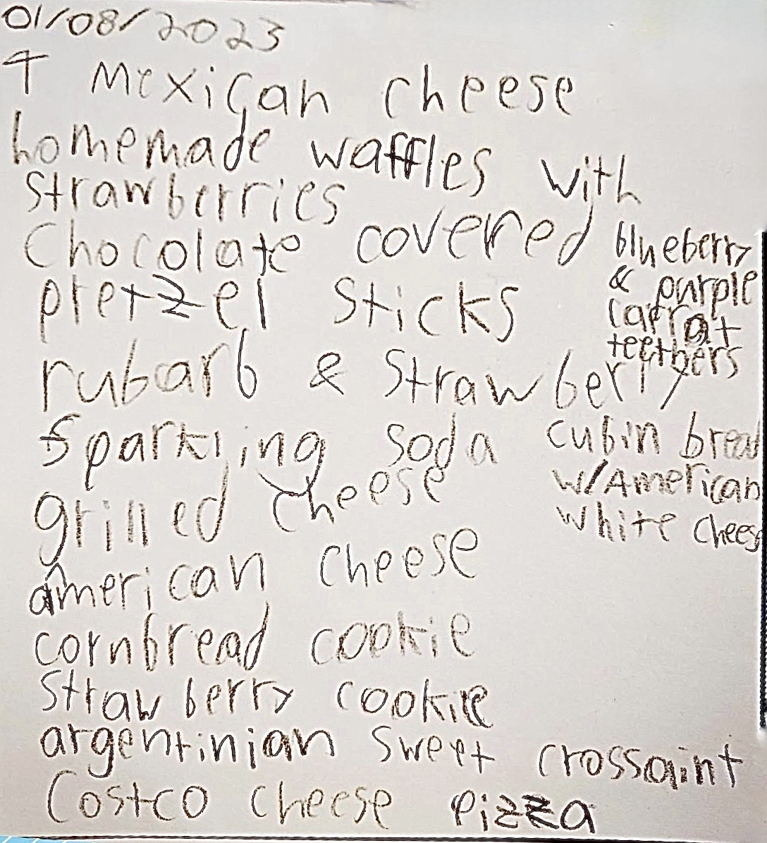 “Sometimes my friends have things that look good, so I ask what it is and write it down, then I go home and show my Mom my notebook and ask to try it."